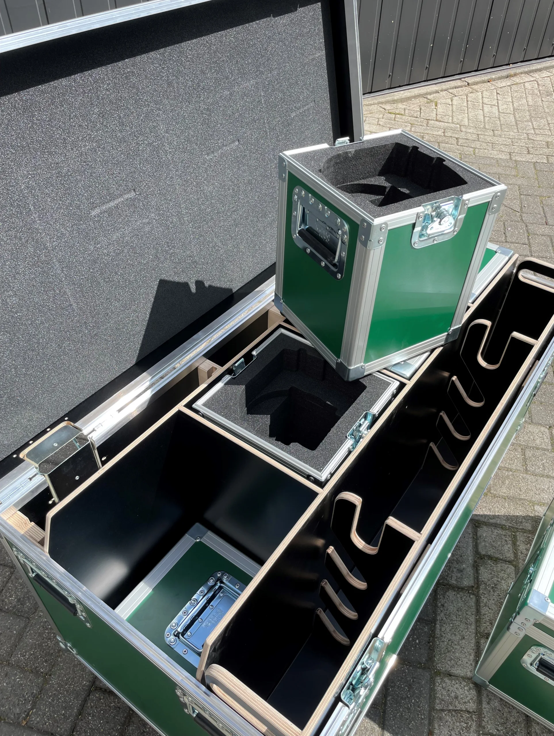 Deze flightcase is perfect voor het vervoeren van PTZ camera’s en K&M statieven. In deze flightcase kunnen een viertal kleinere flightcases voor verschillende types PTZ camera’s geplaatst worden. Dit wordt altijd gecombineerd met vier stuks roundbase statieven van K&M of eventueel met Gravity Stands. Doordat de flightcases compleet in de grote flightcase opgeslagen worden blijven de setjes compleet. Ook is er nog een mogelijkheid om te wisselen van types en om de aantallen te veranderen. De flightcases los meenemen is ook altijd een optie.